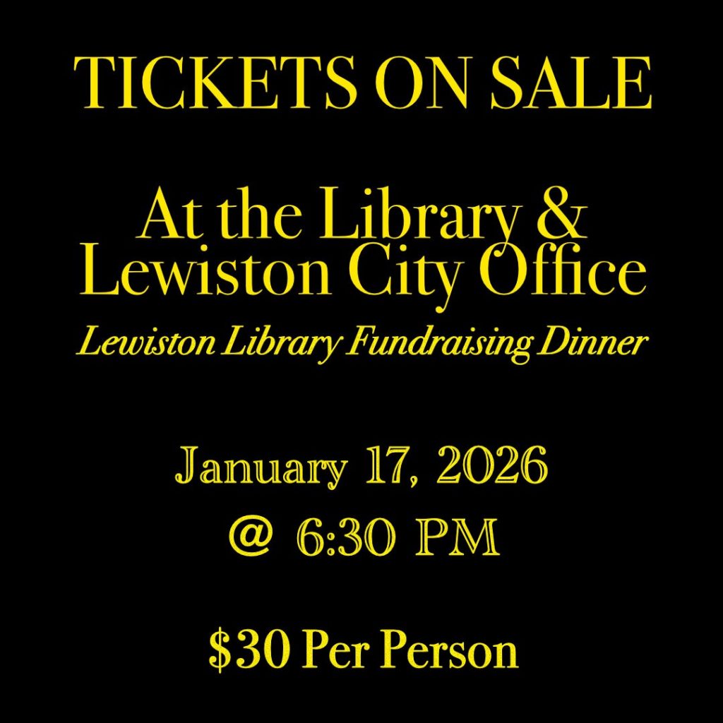 Library Fundraising Dinner tickets now on sale! The smoked beef brisket dinner and live music event takes place Saturday, Jan. 17 at 6:30. Tickets available at the Lewiston Public Library and the City Office. Check out silent auction items at the library!